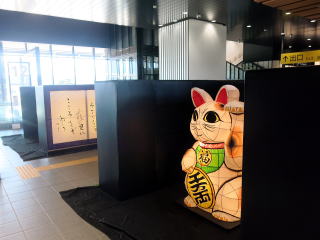| トイレの衝立には和紙細工の行灯があります。招き猫を模したものもありました。 |