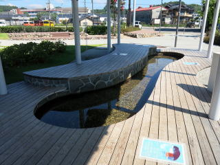 | 温泉駅らしく駅前のロータリー向かいには足湯があります。駅舎目の前には手湯もあります。 |