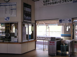 | 駅前には大森銀山から大田方面、広島方面へのJRバスが出ています。 | 委託ながら出札窓口が営業しています。沿線唯一の券売機もありましたが現在は撤去されたようです。 | ||||||||||||||||