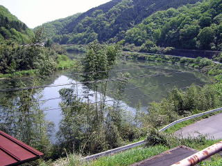 | ホームは1面1線。鉄骨基礎の簡易ホームで、白線などもありません。 | ホームから見る江の川。下り方に江の川支流長谷川が合流しており、その周囲に小さな集落があります。 | ||||||||||||||||
