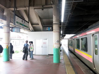 | 在来改札。同じコンコースに新幹線改札も併設し、みどりの窓口などもあります。待合室は改札内橋上にあります。 | ホームは2面4線ですが、乗り場は2〜5番となっています。駅舎は橋上型ですが、かつては地下道もありました。久しぶりに訪問したら見当たらなかったような…。 | |||||||||||||||||||