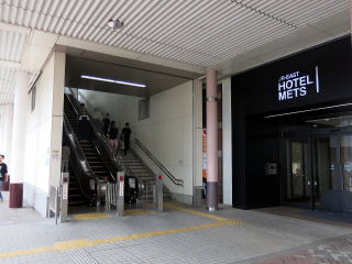 | 駅舎入口。この反対側にもあります。こちらは系列のホテルメッツ側の入口です。 | 駅舎コンコースとの間には在来構内を越える自由通路があり、商業施設が並ぶショッピング街となっています。 | |||||||||||||||||||