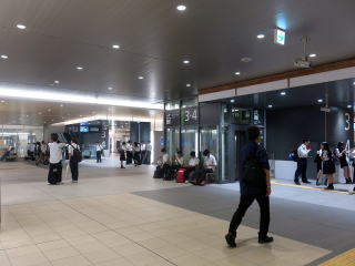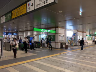 | 2階の自由通路に面する改札口。これは在来東側改札。おそらくメインの改札です。 | 東改札の裏側にも自由通路コンコースがあります。この改札は在来西側改札です。 | |||||||||||||||||||||||
